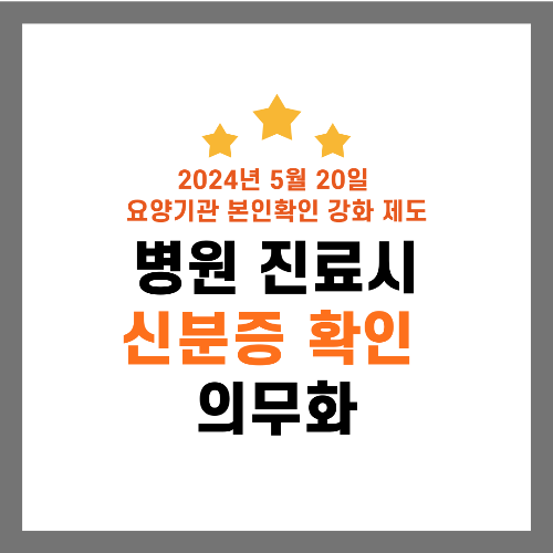 2024년 5월 20일부터 병원갈 때 건강보험 본인확인을 위해 신분증을 필수로 가져가야 하는데요. 그동안에는 병원 방문 시 이름과 주민번호만 불러주면 자동으로 건강보험 여부를 체크하게 되었지만 앞으로는 병·의원·요양기관, 약국등에서 반드시 신분증 등으로 본인 여부와 건강보험 자격여부를 확인하게 됩니다.