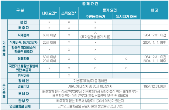 *소득요건 : 연간 소득금액 100만원 이하(근로소득만 있는 경우 총급여 500만원 이하)
