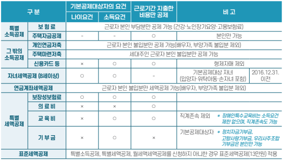 *나이요건 : 장애인의 경우 나이요건을 적용하지 않으며, 당해 과세기간 중 공제기준일이 해당하는 날이 있는 경우 적용